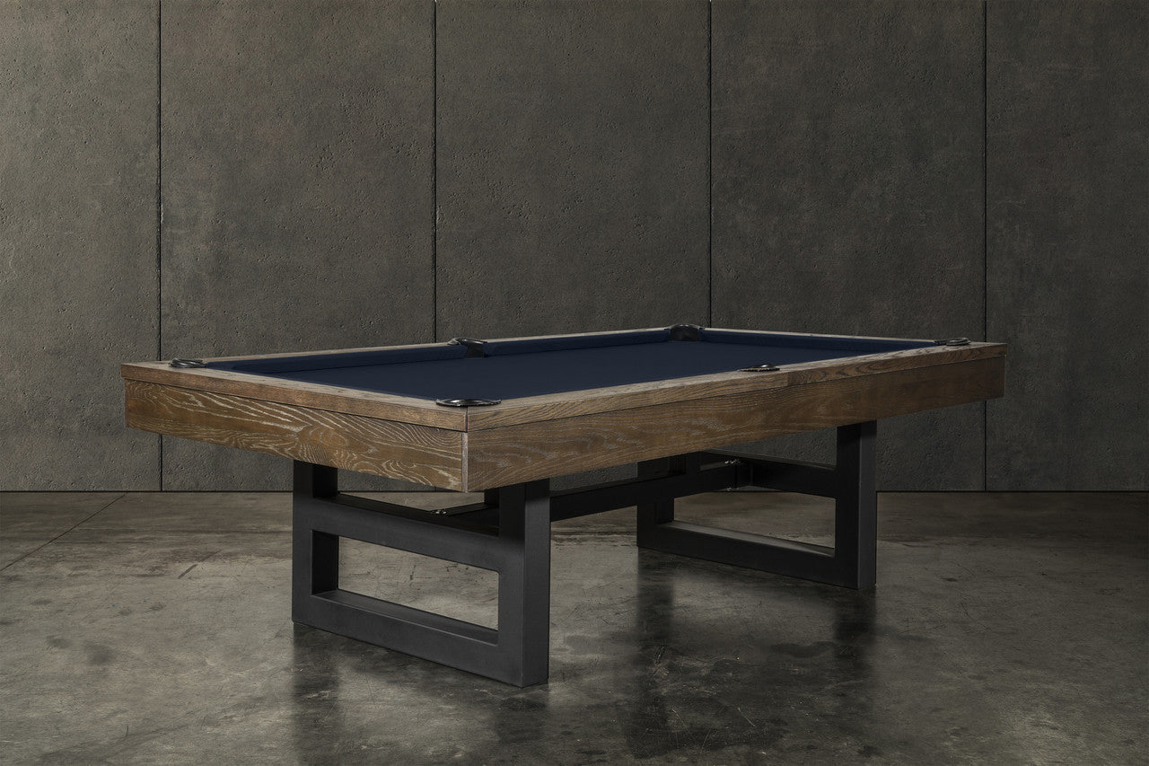 The Mckay 7' Slate Pool Table in Brownwash Finish by Nixon Billiards is one of our best designer pool tables. It’s the perfect addition to any home office or game room. Featuring a modern design with brushed metal legs, this contemporary pool table is sure to be the new focal point in your home for entertaining or dining.